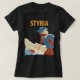 Estíria, Áustria. Homem de esqui olhando para uma vila.