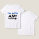 Este design "I'm With Him" é o complemento perfeito para o seu par "I'm With Her", criando um conjunto completo para casais. Com um ousado "I'M WITH" em azul e um "HIM" forte em preto, com uma seta clara apontando para o seu parceiro, este design é ideal para casais que desejam mostrar de forma divertida o seu afeto e união. Perfeito para camisetas, moletons ou outras roupas combinando, é uma maneira divertida e doce de dizer "Estou com ele!".