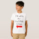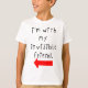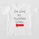 Uma peça sobre a popular ideia "estou com uma estúpida", diz "Estou com meu amigo imaginário" em caracteres infantis com seta desenhada à mão apontando para o lado.