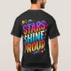 A design de camiseta "Stars Shine Proud" apresenta um céu noturno vibrante cheio de estrelas brilhantes, simbolizando esperança, unidade e brilhantismo. No centro, uma estrela maior irradia luz, representando orgulho e individualidade. As estrelas circundantes formam constelações sutis, criando um sentido de união e de empoderamento. A paleta colorida combina azuis profundos da meia-noite com dourados e silenciosos brilhantes, evocando uma atmosfera celestial. O olhar geral é inspirador e visualmente impressionante, perfeito para aqueles que querem vestir seu orgulho e confiança com estilo.