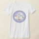 Lua sorridente em uma nuvem macia cercada por estrelas dançantes em um céu é uma design perfeita para uma camisa de sono. O texto diz "FECHEM OS OLHOS E DORMEM ATINGIDOS ENQUANTO AS ESTRELAS DANÇAM ESTA NOITE".