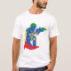 Qualidade média do tecido e impressão. Menos boa pelo atraso verificado. O L americano é muito grande em comparação com o L europeu!