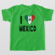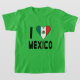 A camiseta do menino usa uma bandeira mexicana em forma de coração em vez da palavra LOVE. O design diz que eu amo o México. A bandeira é verde, branca e vermelha com uma águia no centro. Um favor divertido para as celebrações de Cinco de Mayo, ou qualquer ocasião especial. O design é apresentado tanto na frente como no verso.