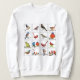 Um bando inteiro de aves canoras bonitas, vibrantes cobre a parte dianteira desta camisola, o vestuário perfeito para entusiastas do pássaro!