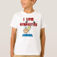 Uma figura menina da vara faz um handstand na esteira que pratica sua rotina do assoalho e o texto lê-me "ama a ginástica" em t-shirt do gymnast da menina, em canecas, em sacolas, em mousepads, em etiquetas, em cartões, e em outros artigos do roupa e do presente do gymnast da menina.
