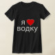 Eu amo a vodca, com um coração vermelho grande, na rotulação (cirílica) do russo