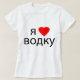 Eu amo a vodca, com um coração vermelho grande, na rotulação (cirílica) do russo