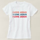 Declare o seu amor por Jesus Cristo. diga alto e claro com esta linda camiseta com fonte vermelha, azul