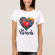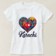 Mostre seu amor por Karachi com esta camiseta colorida e vibrante. O design em forma de coração apresenta um caleidoscópio de padrões e cores que incorporam o espírito dinâmico de Carachi, enquadrado por uma silhueta de paisagem urbana. Esta camisa é perfeita para moradores de Karachi, visitantes que deixaram seu coração nesta cidade, ou qualquer um que queira vestir seu amor na manga... ou no peito, neste caso!