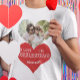 Crie sua camiseta de casal romântica e totalmente personalizada com sua mensagem de amor personalizada e sua foto em forma de coração. Você pode mudar as 4 linhas de citação de texto no modelo de coração vermelho e substituir a foto de modelo com a dentro de imagem no coração. Presente perfeito para um namorada ou namorado, noiva, noivado, casamento ou comemoração de casal.