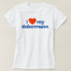 t-shirt do dono do cão. Raça de camiseta de cachorro. Mostre seu amor pelo seu dobermann