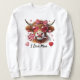 Eu Adoro camisa Moo. © Camisetas & Sweats na Zazzle. Este suéter Namorados tem uma Vaca Highland sobre ele, vestindo óculos de sol em forma de coração e com um grande pirulito.