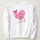 Um coração cor-de-rosa alegre com espirais brancas, sotaque de borboleta e tipografia EU TE AMO. Motivo brilhante e caprichoso ideal para romance, presentes e roupas alegres para o clima do Dia dos Namorados.