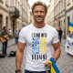 Camiseta Eu apoio a Ucrânia. Tridente da Ucrânia.