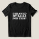 A design "I Shaved My Balls For This?" é um item humorístico e sarcástico que trará um sorriso para a face de alguém em encontros casuais, festas ou qualquer ocasião.