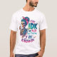 Design vibrante e colorido com um esqueleto feminino tomando café. O texto colorido diz: "Eu digo muito IDK, mas confie em mim, eu sei". Esse design está disponível em uma grande variedade de produtos.