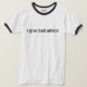 A t-shirt chegou dentro do tempo anunciado e apresentou-se com todas as características que estavam anunciadas. Boa qualidade do tecido e bons acabamentos. O tamanho veio conforme o pedido. Perfeita! Fiz apenas uma pequena personalização no texto, e o mesmo assim veio, bem como todo o restante texto, devidamente impresso e exactamente como estava anunciado na página. Sem falhas!