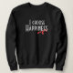 Design de camisola simples e minimalista, baseado em texto, com tipografia de tinta branca, contendo slogan inspirador, e eu escolho felicidade decorada com o formato cor-de-abstrato cor-de-rosa. esta design de camiseta básica é a citação de motivação diária perfeita e uma citação feminista que dá poder às mulheres e raparigas para as ajudar a brilhar.