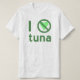Eu odeio atum. Design usa letras verdes, um coração verde e o sinal internacional "NÃO" para ler, "Odeio atum". Para aqueles que não o "coração".