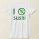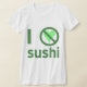 Eu odeio sushi. Design engraçado usa letras verdes, um coração verde e o sinal internacional "NÃO" para ler "Eu odeio sushi". Para aqueles que não "amam" isso.