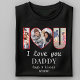 Escolha este ♥ U trendy moderno, com três fotografias, tee como presente de feriado para os seus entes queridos: mãe, madrasta, avó, pai, padrasto ou avô para o dia de os pais ou mãe, Natal, Férias ou aniversários. O design apresenta o texto personalizável 'EU AMO O PAI, MUITOS DE AMOR, ABRAÇOS E BEIJOS XOXOXO', além de 3 das suas fotos da família favorita com máscaras ♥ U exclusivas.