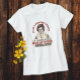 Uma camisa retrô legal de uma mulher de roupão, com as palavras "Eu seria uma pessoa matinal, se a manhã fosse ao meio-dia." As cores são acinzentadas com castanhos, verdes e vermelhos.