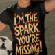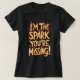 Uma ilustração desenhada à mão com o texto que eu sou a faísca que você está perdendo! em uma fonte cor laranja e feroz. O texto está estilizado com chamas ao redor de cada letra.