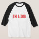 3/4 de T do raglan com slogan "eu sou um cão." Se um fã dos buldogues, um fã do vídeo de YouTube "mim é um cão", ou se você ama cães, você olhará impressionante nesta camisa. "Eu sou um doooooooooog!"
