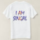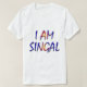 A design de camiseta apresenta as letras maiúsculas e azuis "I AM SINGAL" em um design impressionante e multicolorido. As cores vibrantes e a tipografia ousada criam um olhar dinâmico e atraente, fazer esta t-shirt como uma peça perfeita para qualquer pessoa que queira expressar o seu estatuto de solteiro com confiança e estilo.