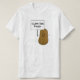 Design de Camiseta Divertida, Eu Te Amo, Batata. Uma batata marrom feliz com pequenos olhos pretos e uma boca feliz sorrindo. Ele está segurando uma placa que diz que eu te amo batata. O texto é um modelo que você pode usar para alterar o estilo, o tamanho e a cor da fonte, alterar as palavras ou excluí-las completamente.