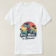 Um design de camisa vibrante com um dinossauro divertido e adorável no estilo de desenho animado. O dinossauro é ilustrado em uma pose viva, com seus pequenos braços estendidos como se dando um abraço. É colorido em tons de verde e azul, com detalhes bonitos como bochechas rosadas e um sorriso grande e amigável. Acima do dinossauro, o texto diz: "ROAR SIGNIFICA" em negrito e brincalhão. Abaixo do dinossauro, o texto continua: "EU AMO VOCÊ NO DINOSSAUR" em uma letra retrorestilada, completa com uma textura ligeiramente angustiada para melhorar a vibração da safra. O texto se alterna entre tons pastéis macios como o rosa-coral, o amarelo-sol e o azul-céu, ecoando uma estética retrorreflectora.