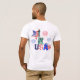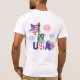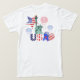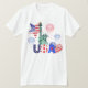 "EUA" com a Estátua da Liberdade atrás dela e um coração e estrela no estilo de bandeira americana, e fogos de artifício em vermelho, branco e azul. Um presente de excelente para 4 de julho.