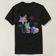 "EUA" com a Estátua da Liberdade atrás dela e um coração e estrela no estilo de bandeira americana, e fogos de artifício em vermelho, branco e azul. Um presente de excelente para 4 de julho.