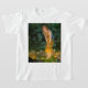 T-Shirt com a pintura de Edward Robert Hughes no meio do Verão (1908). Uma mulher bonita com um vestido de ouro fica no meio de um círculo de fadas. Pequenas fadas seguram luzes coloridas. O véu entre o mundo humano e o mundo da fada é mais fino durante a véspera do Verão. Um presente maravilhoso para amantes de contos de fadas e arte britânica.