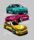 Design do estilo anime que retrata a evolução do chassi da lendária Silvia, a imagem mostra os modelos S13, S14, S15. Perfeito para amantes de carros japoneses e JMD!