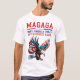 Uma águia-careca majestosa Stars and Stripes está pronta para pegar sua presa nesta camiseta patriótica. O texto vermelho e azul acima da imagem diz "MAGAGA - FAÇA EXCELENTE AMÉRICA E GLORIOSO NOVAMENTE". Para todos nós que apoiamos Donald Trump para o presidente de novo!