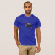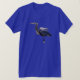 Esta camisa apresenta o Excelente Blue Heron, uma ave balbusta na família herônica Ardeidae, comum perto das margens de água aberta e em zonas úmidas. Ele é o maior herão norte-americano. Entre as características notáveis contam-se penas de voo, coxas avermelhadas, e um par de vermelho-castanho e preto para cima dos flancos; o pescoço é uma cinza enferrujada, com o preto e branco a passar pela frente; a cabeça é mais clara, com um rosto quase branco, e um par de plumas pretas a correr de cima para trás da cabeça. As penas no pescoço inferior são longas e pluma. Porque esta é a época de reprodução, ele também tem plumas nas costas inferiores e uma folha de laranja. Ele está parado em água rasa e suas penas são iluminadas de trás para frente pela luz luminosa do sol.