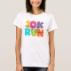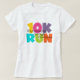 Texto brilhante com várias cores, com 10K de RUN e texto preto, com a seguinte redação: Determinação da Resistência na execução de T-shirts, capuzes, botões, bolsas, canecas, adesivos e outros produtos para qualquer pessoa que esteja a treinar ou já tenha divertido um 10K!