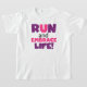 Se você gosta de correr, correr 5Ks, 10Ks, meia maratona, ou maratonas, você vai adorar este design de texto colorido em roxo e rosa que lê Run and Embrace Life! Corra e Abraça camisetas, canecas, bolsas, cartões, autocolantes, correntes-chave, mousépias, capas de iphone, ímãs e muito mais!