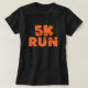 5K Correr T-shirts, canecas, bolsas, adesivos, correntes-chave, capuzes, tampas de tanques e outros presentes com texto laranja que lê "5K RUN" e texto preto que lê "Resistência à Determinação". Esses itens motivacionais de roupa e presentes são excelentes, seja treinamento para um 5K, já executou um 5K, ou vários 5Ks!
