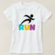 Se você estiver à distância correndo, seja apenas treinando para seu primeiro 5K ou você tiver realizado um 5K, 10K, meia maratona, ou maratona, você vai adorar nossas T-shirts RUN, capuzes, tampas de tanques, botões, canecas, guardas, e muitos outros itens de roupa de corrida com um corredor de silhueta preto e texto bronzeado.