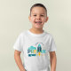 Uma divertida t-shirt pré-k formando para celebrar o formando. O design apresenta um design colorido brilhante com o nome do formando exibido. Design de tipografia divertida com letras coloridas, foguetes, nuvens e estrelas. Presente perfeito para o formando. Design por Moodthology Papery