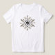 Ilustração da explosão solar tribal, cúbica, com setas e penas em cinzas e tons de ouro.