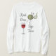 A camisa do Knitter com a bola do vidro do fio e de vinho. Grande ideia relaxar - faça malha um, sorvo dois.
