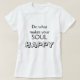 Compartilhe uma mensagem positiva com o mundo com esta t-shirt Faça o que faz a sua alma FELIZ. O tipo de letra, a cor, o tamanho e o texto podem ser personalizados de acordo com as suas necessidades.