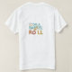 Uma design de camiseta divertida e enérgica apresenta a frase "Faça um rolo de barril" em um espectro vibrante de cores. Cada palavra poderia ser uma cor diferente, e a fonte poderia ser ousada e lúdica, capturando o espírito da frase embalado em ação. Imaginem como uma instrução de piloto a rebentar com cor!