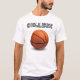 Camisa simples de basquete universitária com basquete de quase cheio na frente.