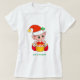 Camiseta do fada de Natal bonita e alegre segurando uma caixa de presente. O texto pode ser personalizado. A baga de azevinho nas costas pode ser personalizada.