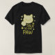 Um design de camiseta giro e lúgubre com um gato de desenho sorridente com sua pata levantada, acompanhado pela frase divertida "Fale com a Pata." Perfeito para amantes de gatos e para qualquer um com senso de humor desagradável, esta ilustração encantadora acrescenta personalidade a qualquer roupa casual.