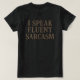 "Falo sarcasmo fluentemente" - a camiseta perfeita para qualquer pessoa cuja segunda língua é o sarcasmo. Um design engraçado e identificável para pessoas que amam humor inteligente, respostas espirituosas e um pouco de atitude. Ótima ideia de presente para amigos, colegas de trabalho ou qualquer pessoa com uma língua afiada e um grande senso de humor.